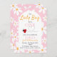 Convite Pink Pastel Daisy Lady Bug Aniversário