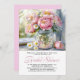 A charming bouquet of pink peonies, white daisies, and baby's breath rests in a clear mason jar filled with water, its stems elegantly visible through the glass. Set on a sunlit windowsill with scattered petals and a single peony nearby, the scene radiates soft romance and rustic elegance—perfect for a bridal shower celebration. The mason jar adds a touch of vintage charm, evoking a cozy, heartfelt gathering where love blooms as beautifully as the flowers. The back of the card is pale pink. Personalize with your information.