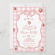 Pink Plaid Strawberry Coquette Bow Bridal Shower Invitation, Berry In Love Bridal Shower Invite, Editable Gingham Bridal Shower
