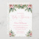 Celebrate the joyous arrival of your little one with this enchanting winter girl baby shower invitation. The design features delicate Christmas poinsettia and fir branch floral bouquets in soft hues of baby pink, sage green, and sparkling gold glitter, perfectly capturing the festive spirit of the season. The invitation’s elegant design is further enhanced by the stylized "Baby Shower" text, where a sweet heart joins the words, creating a unique and heartwarming detail (cannot be changed). The soft pastel colors combined with the festive floral elements make this invitation an ideal choice for a winter-themed baby shower.