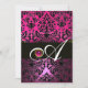 Convite PINK PURPLE BLACK DAMASK MONOGRAMA Ametist Fuchsia