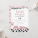 She is a fast one! Planning a girl vintage race car birthday party for a first birthday? Gather family and friends with a pink vintage race car birthday invite. Easily edit your pink first lap around the track birthday invite with all of the first birthday party details for the birthday girl turning one.