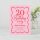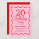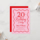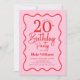 Convite Pink Red Retro 20th Birthday Wavy Border
