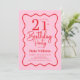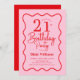 Convite Pink Red Retro 21st Birthday Wavy Border
