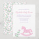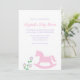 Pretty pink rocking horse with shades of pink and purple next to fun flowers
