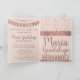 This elegant, pretty, and unique Quinceañera 15th Birthday photo folded invitation is the perfect design for the glamorous and chic birthday girl. On the front is a feature photograph, outlined in faux rose gold glitter confetti. The inside design features a faux printed sparkly rose gold glitter sequin Mexican fiesta banner on a simple blush pink background with brushstroke custom typography. On the other panel is simple girly and pretty sparkly glitter confetti scattered across the page alongside a rose gold striped border that outlines a full name monogram of the guest of honor. This design will exude modern and trendy vibes to your guests and wow them with its fashionable design. Change the color of the background and font by clicking on the "customize" button.
