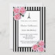 Convite Pink roses black white stripes Paris Birthday