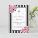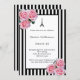 Convite Pink roses black white stripes Paris Sweet 16