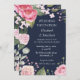 Convite Pink Roses on Blue Customizable Wedding Invitation
