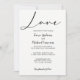 Escrita moderna, negra e branca "Love". Personalize com seus nomes e detalhes de casamento, este layout elegante e design dá o tom para seu elegante, romântico e chic casamento. Com um lado de trás rosa e um roteiro de amor elegante também.