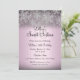 Convite de Aniversário de 16 Anos Rosa. Belo design de floco de neve de cristal prateado. Por favor, note: Todas as imagens planas, elas não têm joias reais!