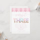 Celebrate your toddler's milestone with this "Sweet to be Three" ice cream parlor birthday invitation. This adorable design features watercolor sprinkle typography, a classic pink awning, and a whimsical sundae aesthetic. Perfect for a summer ice cream social, this cheerful invite is easily personalized to scoop up some fun for your daughter’s third birthday party.