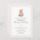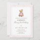 Convite Pink Stripe Beary First Birthday Girl Teddy Bear