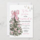 Convite Pink Stripes Bow Christmas Tree Couple Wedding