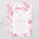 Pink Toile de Jouy Baptism & First Birthday Bow Christening Invitation