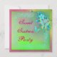 Convite de aniversário de dezesseis anos com borboleta grunge neon rosa brilhante, verde lima, roxo e azul-teal e flores.