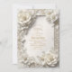 Convite Pintura aquarela flores brancas 3D douradas Chuva