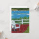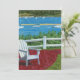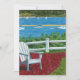 Esta vibrante pintura a pastel de óleo apresenta uma cadeira Adirondack branca em um pátio de tijolos vermelhos com vista para o Cabo Cod. Verde brilhante, azul, vermelho e amarelo criam uma deslumbrante paisagem marítima de verão na costa da Nova Inglaterra.
