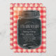 Convites de Aniversário de Casamento de 70 anos Rústico Vintage para Piquenique. Personalizados com os detalhes da sua celebração. Você pode alterá-lo para aniversários de 10, 25, 30, 50, 40, 60 anos etc. Apresenta uma ilustração criativa de um jarro de mason em um fundo de toalha de mesa vintage. Uma bela tipografia de texto - você pode editar. Ótimos convites de aniversário de casamento para piquenique rústico ou outros aniversários. Este convite de aniversário de casamento foi projetado por superdazzle.com