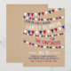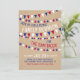 Organize o piquenique perfeito de reunião de família com um design casual de verão. O enfeite de bandeirinhas vermelhas, brancas e azuis e as letras alegres criam a vibe perfeita de diversão e humor para um churrasco de reunião ou uma reunião patriótica de 4 de julho. Obtenha seus convites impressos ou digitais agora e prepare o cenário para uma festa inesquecível!