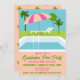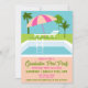 Um convite para uma piscina de graduação. Apresentando um gráfico de uma piscina de natação, sangria, guarda-sol e palmeiras. Um convite moderno com vibrações tropicais de verão que pode ser facilmente personalizado.