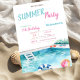 Estes convites apresentam piscina, flutuação de piscina, óculos, flores. Este convite é facilmente personalizado para o seu evento simplesmente adicionando os seus detalhes.