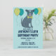 Jogue uma massa incrível com este belo filhote e estes convites de festas de aniversários personalizados. Estas apresentam uma ilustração de um pit bull cachorrinho vestindo óculos e um arco de gravata cercado por balões com todos os detalhes de sua festa abaixo.