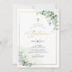 PixDezines Lúpulo/Batismo Português, com cor d'água verde, Eucalyptus. Acentuado com uma cruz de ouro e um confete acentuado com um roteiro de caligrafia de luxo. Todos os elementos editáveis. Copyright © 2022 PixDezines™. Todos os direitos reservados.