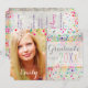 PixDezines coleção deslumbrante, confetes em multicolorido com fundo de folha de prata falsa, convites de festa de graduação e / ou anúncio. Os designs dinâmicos da PixDezines permitem que você edite qualquer elemento deste produto, ou seja, fundo, cortes, fontes, cor das fontes. Basta adicionar uma foto do seu graduado.