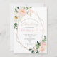 PixDezines Batismo, com rosas cor-de-rosa beije pálido e água de rosa em aquarela com cruz banhada a ouro, moldura de pedra gema lapidada. Nós acentuamos com caligrafia luxuosa. Todos os elementos são editáveis.