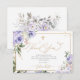 PixDezines Cartão de agradecimento da Primeira Comunhão. Com arranjos florais em aquarela de rosas roxas e creme com hortênsias e eucalipto. Uma cruz dourada falsa, com detalhes em pó de ouro e caligrafia de luxo. Todos os elementos são editáveis e removíveis.