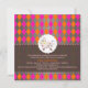 Convite PixDezines harlequin/rosa+laranja/chá de fraldas/D