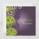 PixDezines Monstera, folhagem tropical, em tons de roxo e verde-limão com fundo degradê roxo escuro removível, etc. Convites de casamento também adornados com espirais peroladas. Copie+cole quaisquer elementos.