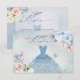 PixDezines cartão de recepção de quinceanera com borboletas azul-acinzentadas aquarela, rosas, vestido brilhante em azul-acinzentado e fundo azul-claro iridescente (veja os filtros para mudar o tom) e confetes. Todos os elementos são editáveis.