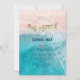PixDezines surfa, festa de Bar Mitzvah na praia. Água azul aqua do oceano na costa de areia rosa. Nosso design dinâmico permite que você edite todos os elementos. Clique no botão "personalizar mais" para editar mais ou adicionar mais texto / monograma.