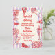 Se você procura um convite de chá de fraldas único elegante e facilmente editado, este é perfeito para você. Como vocês podem ver, ele apresenta um roteiro vermelho escrito à mão magenta com entrega especial e caprichosa em fundo creme. E a mão vermelha italiana desenhou piza e vidro de champanhe e vela e uvas. Dentro uma moldura desenhada manualmente e listras de aquarela púrpura. Com informações inteiras que podem ser personalizadas facilmente clicando no botão personalizar. Este convite de aniversário de tendências Quirky e exclusivo também é um e-convite virtual digital se você quiser enviá-lo por e-mail ou texto. Então pegue e faça seus convites verdadeiramente engajados.