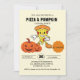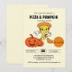 Pizza e abóbora de modelo de convite de festas, pizza aquática e abóbora para uma festa de abóbora de Halloween.