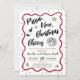 Convide seus entes queridos para uma celebração natalina festiva e divertida com este convite de Natal temático de pizza e vinho. Com ícones desenhados à mão de pizza e vinho e caligrafia moderna, este convite é perfeito para encontros casuais, jantares de Natal ou festas de Natal com amigos e familiares.