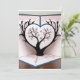 Esta placa 3D apresenta uma árvore florida preta emergente de um coração aberto. A árvore é desenhada artisticamente com galhos ramificados do tronco principal e carregando pequenas flores cor-de-rosa que acrescentam vida e beleza ao design. O fundo é decorado com delicadas gravuras que conferem elegância ao design e reforçam seu apelo visual. O cartão é perfeito para ocasiões especiais, como casamentos ou feriados, uma vez que reflete o simbolismo do amor, crescimento e renovação de uma forma artística e bela.