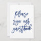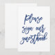 Placa moderna e elegante que diz "Por favor, assine nosso livro de visitas" em azul marinho