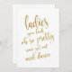 Convite Placa de Banheiro Feminino Dourada para Casamento
