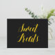 Sinal de casamento "Sweet Treats" em estilo de caligrafia chique com folha de ouro falso, simples e elegante.