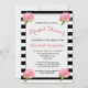 Um chá de panela moderno com listras negras e brancas e uma borda floral rosa. ==============DESIGN TIP=============== Use o botão personalizar para redimensionar e reorganizar qualquer texto que não funcione após a personalização.