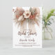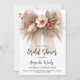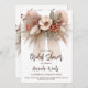 Cartão de chá de panela chic boho com florais neutros, grama pampas e tons suaves de terra, perfeito para celebrar a noiva a ser com o estilo elegante moderno.