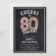 Celebrando 80! Estes convites à festa de aniversário de 80 são desenhados com o título 'Saúde a 80 Anos!'. Apresentando um fundo chalkboard rústico, balões de hélio com número de ouro e oitenta, tipografia branca moderna e um modelo de festa de aniversário simples que é fácil de personalizar.