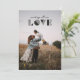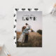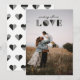 Este cartão de saudação de Dia de os namorados minimalista apresenta uma foto sangrada de cheio, juntamente com a frase "Enviando Todo Nosso Amor". A doce mensagem combina uma simples fonte de script com um design tipográfico ousado desenhado à mão. Há espaço para o cliente adicionar seu nome e data na parte inferior da placa. O verso da carta apresenta um padrão de corações feito no mesmo estilo da palavra "Amor".