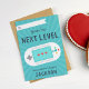 Os Namorados de salas de aulas com tema legal para jogadores apresentam uma ilustração de jogos de mão estilo vintage, adornada com três corações vitais e "você é o próximo nível", mostrados em letras retrógradas. Personalize com o nome do seu filho na parte inferior. Espaço de vazio fornecido para nomes de destinatários escrevendo.