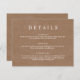 Projetada para coordenar com nossa coleção de russos minimalista, esta placa de gabinete de detalhes personalizável apresenta uma fonte clássica branca em um fundo de efeito kraft. Esta é uma coleção rústica simples e minimalista, muito versátil e adequada para qualquer época de casamento. Para personalização mais avançada deste design, por exemplo, alteração do layout, da fonte ou do tamanho do texto, clique no botão "PERSONALIZAR" acima. Por favor, entre em contato comigo para qualquer pergunta!