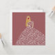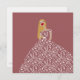 Mulher fashionista vestindo um vestido longo com flores e folhas brancas. Você pode mudar a cor do vestido mudando a cor do fundo. Les Demoizelles ilustra a moda no cartão de vazio. Mão desenhada e terminada digitalmente. Enquadre-o, envie-o com uma mensagem curta, ou use-o como um marcador com uma afirmação pessoal para o seu próprio crescimento.