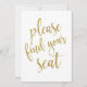 Um sinal de casamento elegante e moderno, apresenta o texto "Por favor, encontre seu lugar" em uma fonte de letra extravagante, a textura de glitter adiciona um toque festivo e glamoroso. A cor do fundo pode ser personalizada de acordo com suas necessidades e preferências, por favor entre em contato se tiver alguma solicitação especial.